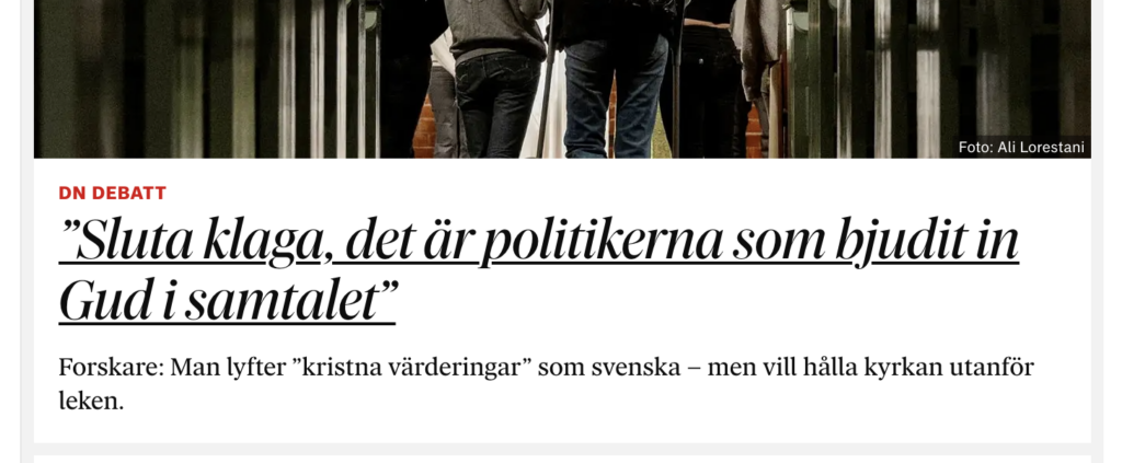 Läs den här: https://www.dn.se/debatt/sluta-klaga-det-ar-politikerna-som-bjudit-in-gud-i-samtalet